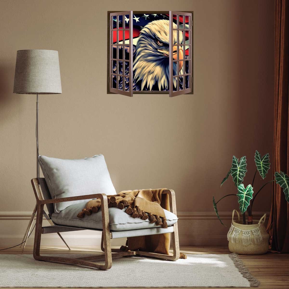 • American Flag with Eagle 3D Art Wall Decal Vinyl Sticker.